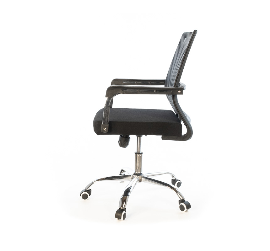 В кресле Бруно Нет установлен механизм качания Tilt, один из самых популярных и широко распространенных механизмов, позволяющих качаться, среди моделей для среднего бюджета. В этом кресле вы можете с легкостью организовать себе комфортный отдых, не покидая рабочее место. Жесткость качания можно настроить под вес пользователя с помощью декоративной ручки под сидением. С помощью газлифта кресло регулируется по высоте посадки. Г-образные металлические подлокотники отлично дополняют стиль кресла и обеспечивают рукам надежную опору. Подлокотники достаточно габаритные, с плоской верхней частью. Для большего комфорта поверх металла есть черные пластиковые накладки. Поверхность пластика текстурированная, приятная на ощупь, чтобы руки не соскальзывали с нее во время работы. Высота подлокотников в нижнем положении сидения кресло позволяет придвинуть кресло вплотную к столу для увеличения свободного пространства помещения.