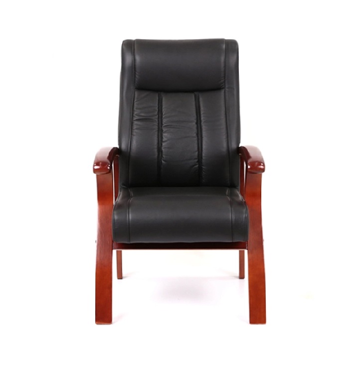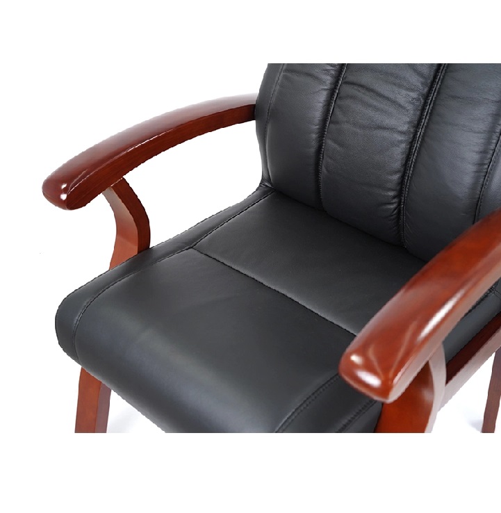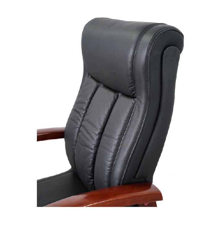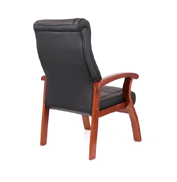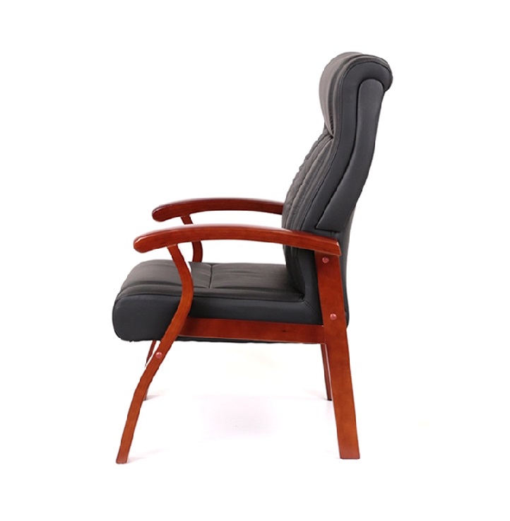 Хорошее сочетание тонированного натурального дерева и черной экокожи или кожи подчеркивает силуэт кресла. Обивка выполнена из экокожи, которая сочетает в себе лучшие качества натуральной и искусственной кожи или в натуральной коже. Удобные деревянные подлокотники придадут максимальный комфорт.