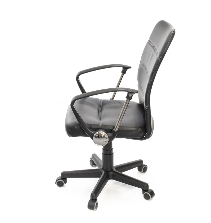 Компактное, легкое и функциональное офисное кресло - все эти эпитеты точно характеризуют модель Диез. Удобство, комфорт, высокое качество и невысокая цена модели обеспечили ей популярность у наших клиентов. Благодаря компактным размерам и стильному дизайну, тонкой спинке, как у кресел из серии Slim, Диез станет мажорной нотой в обустройстве интерьера офиса или дома, даже там где площадь ограничена. Элегантный, лаконичный силуэт и черный цвет делают это кресло универсальным. Оно отлично впишется и в деловую обстановку современного офиса и в домашний интерьер. Строгий дизайн, четкие линии делают это компактное кресло стильным, настаивает на рабочий лад. В качестве обивочного материала используется современный высокотехнологичный материал на натуральной хлопковой основе - экокожа. Она сочетает в себе лучшие качества натуральной и искусственной кожи. Экокожа прочная и эластичная, приятная на ощупь, зимой не такая холодная как натуральная кожа, а в тёплое время года отлично отводит влагу от тела. Простота в уходе и неприхотливость этого материала - еще один плюс в его пользу, как и его демократичная цена. Данное кресло оснащено механизмом пиастра, с помощью которого вы имеете возможность отрегулировать высоту кресла под свой рост.