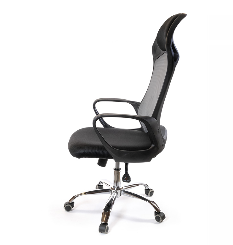 У данной модели стильные массивные подлокотники оригинальной формы из белого пластика. Подлокотники имеют скошенную вперед рабочую поверхность, что позволяет удобно разместить руки и снять излишнюю нагрузку с плечевых суставов. Подлокотники крепятся и к сиденью, и спинке, тем самым увеличивая прочность каркаса. Крестовина кресла Дорос изготовлена из хромированного металла. Такая крестовина может выдерживать нагрузку до 120 кг. Блестящее хромированное покрытие металла не только красивое, но и очень прочное. Оно не боится интенсивных нагрузок и не подвержено царапанию. Универсальные прорезиненные ролики обеспечат креслу необходимую мобильность и подойдут к любому типу напольного покрытия. С данной моделью также отлично сочетаются ролики с хромированными накладками, которые по желанию можно заказать дополнительно. Высокая эргономичная спинка имеет прогиб в поясничной области, который обеспечивает вашей спине комфортную поддержку, а вам хорошее самочувствие даже в конце насыщенного рабочего дня. Боковая поддержка, сформированная каркасом, поможет обегать позвоночник и сохранит правильную осанку. В сидении кресла используется прочное основание из гнутоклееной фанеры, которое совместно с поролоновым наполнением формируют удобную посадку. Углубление в центральной части сидения и скошенный передний край формируют правильную и удобную посадку и защиту от пережимания сосудов ног. Трапециевидный подголовник монтируется в пластиковый каркас, что придает креслу футуристические черты. Мягкий подголовник снимает излишнюю нагрузку с шеи и даёт возможность максимально отдохнуть всему телу.