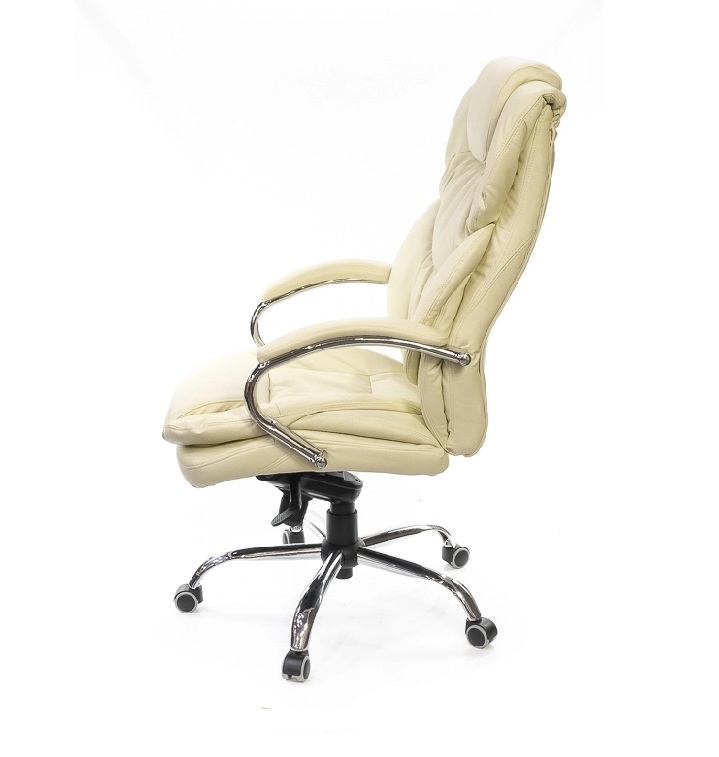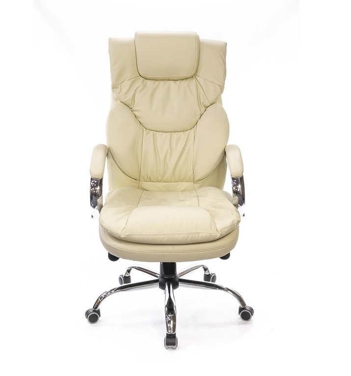 Крестовина в данной модели также из хромированного металла. Покрытие прочное, рассчитано на большие нагрузки, на нем не остаются следы от обуви или мелкие царапины в процессе эксплуатации. Металлическая крестовина достаточно прочная и рассчитана на рабочий вес до 120 кг. Роликовые опоры, которые обеспечат креслу необходимую мобильность, в данной модели оснащены хромированными накладками в стилистике модели. В зависимости от напольного покрытие и по желанию клиента, ролики можно подобрать под помещение, в котором будет эксплуатироваться кресло: пластиковые подходят для мягких покрытий, а прорезиненные – для паркета или ламината. Кресло смело можно назвать эргономичным. Правильный прогиб в поясничной области, высокий интегрированный подголовник с мягкой накладной подушкой и специальное углубление в сидении создают вам обволакивающую поддержку, которая учитывает все анатомические особенности строения тела человека. Добротный монолитный деревянный каркас имеет правильную по эргономике форму и рассчитан на большие нагрузки. Кресло достаточно габаритное имеет высокую спинку и подойдёт для человека высокого и выше среднего роста.