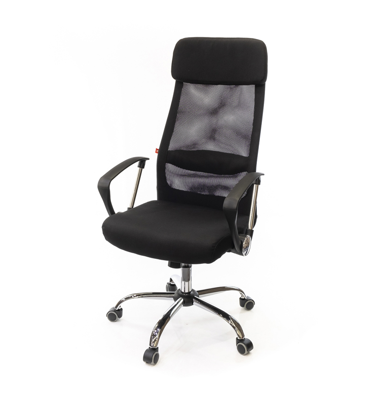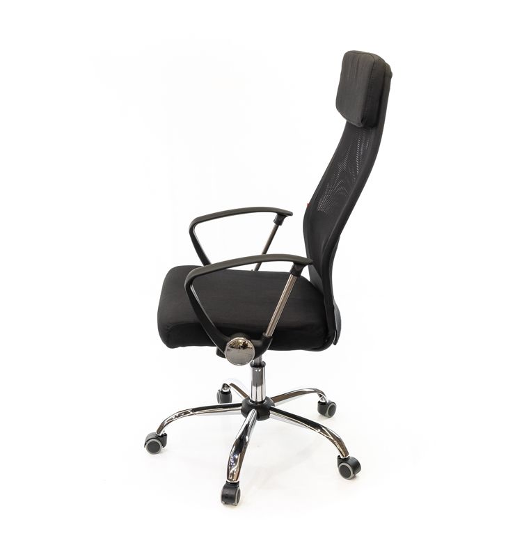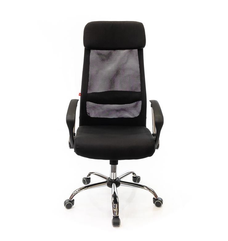 У данной модели стильные комбинированные подлокотники из черного пластика и металлической трубы. Поверхность пластика текстурированный, благодаря чему руки не соскальзывают в процессе работы. Металлическая вставка гармонирует с хромированной крестовиной, создавая единый неповторимый ансамбль. Высота подлокотников в нижнем положении сидения кресла имеет высоту, которая дает возможность задвинуть кресло под рабочий стол для освобождения окружающего пространства. Крестовина кресла Гилмор изготовлена из хромированного металла. Такая крестовина может выдерживать нагрузку до 120 кг. Блестящее хромированное покрытие металла не только красивое, но и очень прочное. Оно не боится интенсивных нагрузок и не подвержено царапанию. Ролики обеспечат креслу необходимую мобильность. Для данной модели отлично подойдут ролики с хромированными накладками, которые по желанию можно заказать дополнительно.