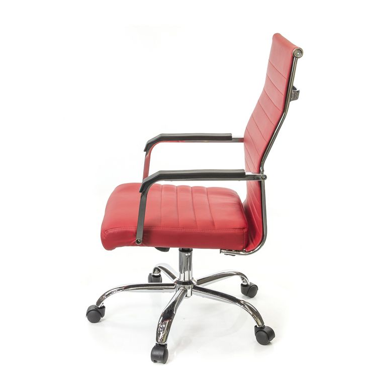 У данной модели оригинальные подлокотники из металла, которые крепятся к основной раме сбоку болтовыми соединениями. Для большего удобства подлокотники оснащены чехлами из черного пластика, которые уберегут ваши руки от контакта с холодным металлом. Высота подлокотников подобрана таким образом, чтобы в нижнем положении сидения кресло можно было задвинуть под рабочий стол и освободить пространство возле стола. Крестовина кресла Кап FX изготовлена из металла. Такая крестовина очень прочная и может выдерживать нагрузку до 150 кг. Блестящее хромированное покрытие металла не только красивое, но и очень прочное. Оно не боится интенсивных нагрузок и не подвержено царапанию. Ролики обеспечат креслу необходимую мобильность. Для данной модели отлично подойдут ролики с хромированными накладками, которые по желанию можно заказать дополнительно. Эргономика конструкции – еще один плюс данной модели. Каркас кресла их металлической трубы имеет небольшой прогиб в поясничной области, что обеспечивает правильную поддержку позвоночника. Кресло в меру жесткое, а значит, будет беречь вашу спину от усталости и сохранит правильную осанку. Металлическая поперечная планка на спинке кресла - это не только элементы декора. Она увеличивает жесткость конструкции, а также ее можно использовать как удобную ручку для перемещения кресла. В сидении использован мягкий наполнитель из мебельного поролона, который отлично держит форму и не просаживается со временем.