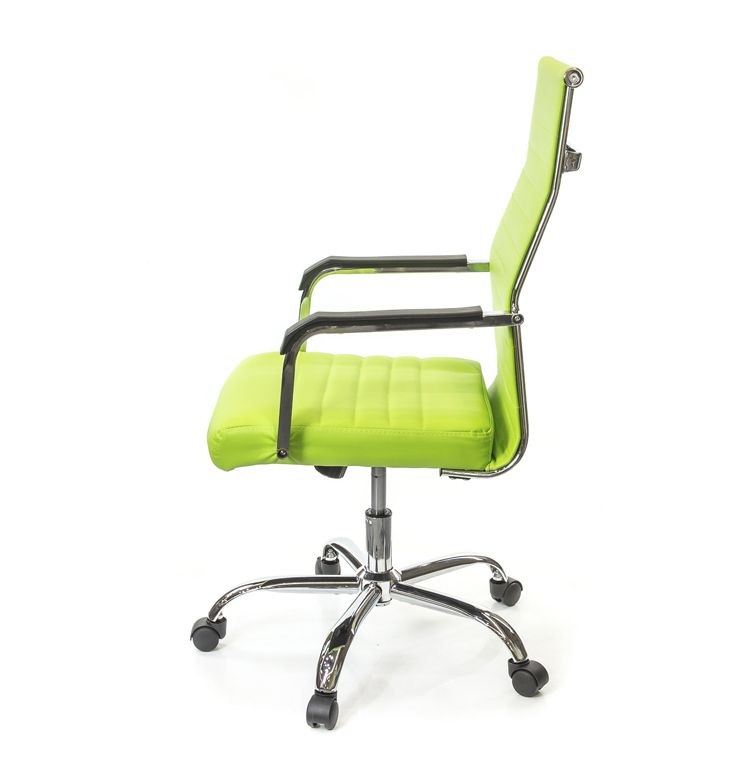 У данной модели оригинальные подлокотники из металла, которые крепятся к основной раме сбоку болтовыми соединениями. Для большего удобства подлокотники оснащены чехлами из черного пластика, которые уберегут ваши руки от контакта с холодным металлом. Высота подлокотников подобрана таким образом, чтобы в нижнем положении сидения кресло можно было задвинуть под рабочий стол и освободить пространство возле стола. Крестовина кресла Кап FX изготовлена из металла. Такая крестовина очень прочная и может выдерживать нагрузку до 150 кг. Блестящее хромированное покрытие металла не только красивое, но и очень прочное. Оно не боится интенсивных нагрузок и не подвержено царапанию. Ролики обеспечат креслу необходимую мобильность. Для данной модели отлично подойдут ролики с хромированными накладками, которые по желанию можно заказать дополнительно. Эргономика конструкции – еще один плюс данной модели. Каркас кресла их металлической трубы имеет небольшой прогиб в поясничной области, что обеспечивает правильную поддержку позвоночника. Кресло в меру жесткое, а значит, будет беречь вашу спину от усталости и сохранит правильную осанку. Металлическая поперечная планка на спинке кресла - это не только элементы декора. Она увеличивает жесткость конструкции, а также ее можно использовать как удобную ручку для перемещения кресла. В сидении использован мягкий наполнитель из мебельного поролона, который отлично держит форму и не просаживается со временем.