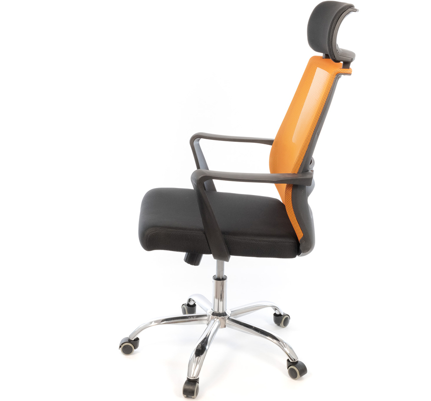 У данной модели стильные Г-образные подлокотники из черного пластика. Поверхность пластика текстурированная, благодаря чему руки не соскальзывают в процессе работы, а на пластике не образуются царапины. Высота подлокотников подобрана так, чтобы вы могли убрать кресло под рабочий стол и освободить окружающее пространство. Крестовина кресла Крокус изготовлена из хромированного металла. Такая крестовина может выдерживать нагрузку до 120 кг. Блестящее хромированное покрытие металла не только красивое, но и очень прочное. Оно не боится интенсивных нагрузок и не подвержено царапанию. Ролики обеспечат креслу необходимую мобильность. Для данной модели отлично подойдут ролики с хромированными накладками, которые по желанию можно заказать дополнительно. Высокая эргономичная спинка имеет прогиб и специальную пластиковую горизонтальную пластину в поясничной области, которые обеспечивают вашей спине комфортную поддержку, а это залог хорошего самочувствия на весь рабочий день. В сидении кресла используется прочное основание из гнутоклееной фанеры, которое совместно с поролоновым наполнением формируют удобную посадку. Кресло в меру жесткое, а значит, будет беречь вашу спину от усталости, и сохранит правильную осанку. Высокий подголовник обеспечит вашей шее и голове надежную опору. Кресло Крокус - это отличный выбор для любителей практичного современного минимализма и отличного качества. Такое кресло отлично впишется в интерьер в стиле "open space", ведь оно, несмотря на свои габариты, выглядит очень легко и воздушно.