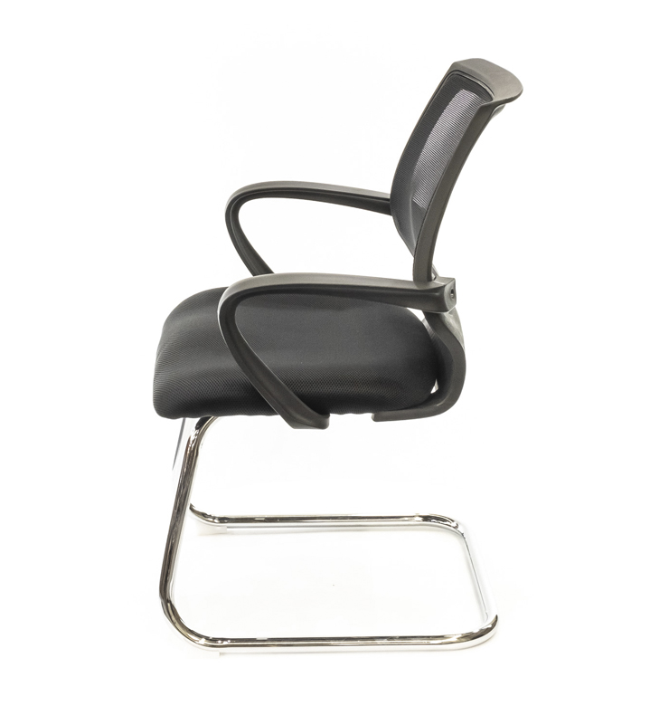 П-образный каркас выгнутый из цельной металлической трубы диаметром 20 мм, его конструкция достаточно прочная и устойчивая. Хромированные элементы, как зеркала, позволяют увидеть силуэты интерьера и не потеряют свою красоту со временем, ведь покрытие очень прочное и стойкое ко всевозможным внешним факторам. Форма основания позволяет креслу немного пружинить, создавая эффект лёгкого покачивания. Для защиты напольного покрытия в кресле использованы пластиковые заглушки. Пластиковые заглушки в основании рамы защищают пол от царапин и повреждений. В основе сидения используется гнуто клееная фанера с поролоновым наполнением под обивкой. Каркас спинки - это толстостенный прочный пластик с внутренними ребрами жесткости, который имеет прогиб в поясничной области для эргономичной поддержки спины. Сотовая ткань обивки толщиной 4 мм имеет те же свойства что и сетка, но более прочная за счет специальной жёсткой основы.