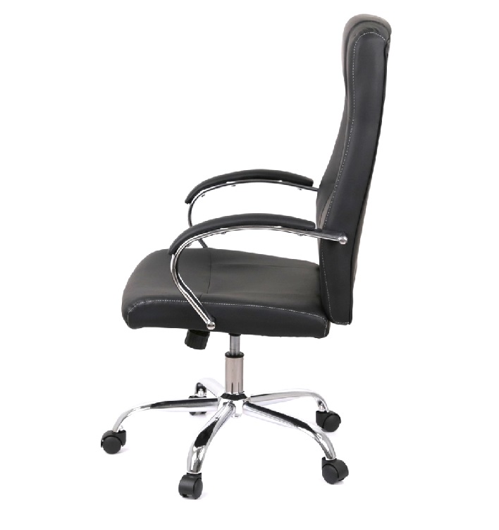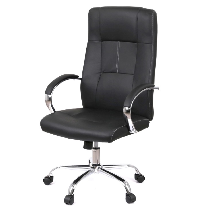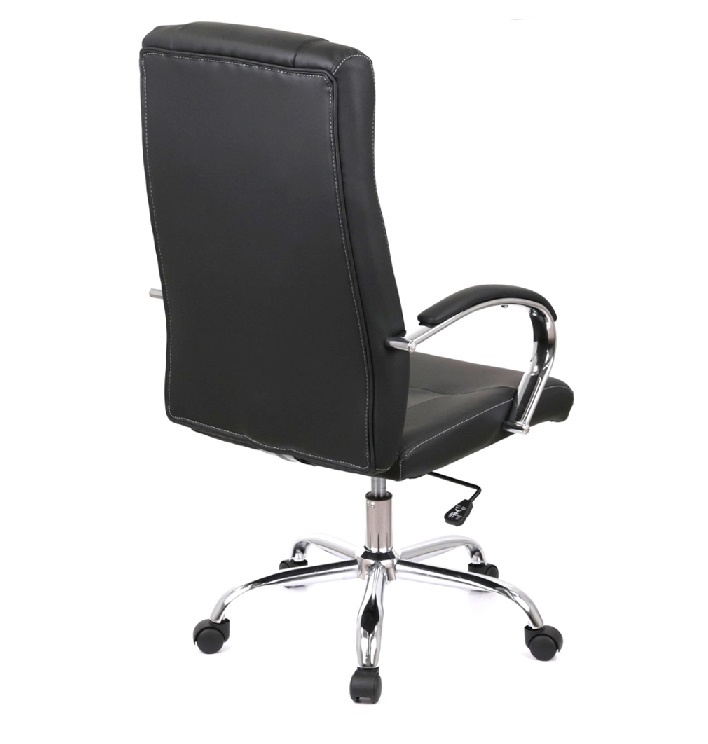 Особенности. Высокая спинка — это ключевая особенность, которая обеспечивает полную поддержку позвоночника, шеи и головы, что помогает уменьшить напряжение и усталость во время длительной работы. Сиденье и спинка имеют контурные изгибы, которые соответствуют форме тела, способствуя правильной осанке. Обивка из экокожи и хромированные металлические элементы создают элегантный и профессиональный вид.