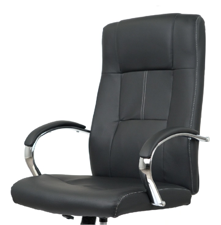 Дизайн. Декоративная прошивка белыми нитками на спинке и сиденье создает визуальный акцент и подчеркивает контуры кресла. Эта деталь придает дизайну современный акцент. Хромированные металлические подлокотники и крестовина являются ярким современным элементом. Они создают контраст с черным цветом обивки, добавляют блеска и визуально облегчают конструкцию.