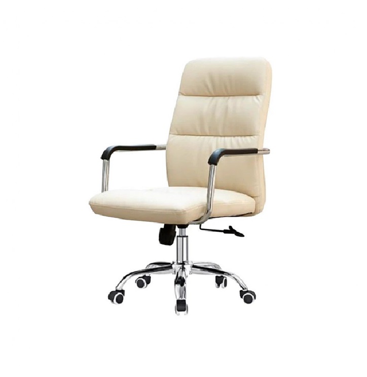 Подлокотники изготовлены из хромированной трубы, которая плавно переходит в каркас кресла. Такая конструкция достаточно жесткая, прочная и надежная. Дополненный накладками из черного пластика блестящий металл прекрасно подчеркивает внешнюю красоту кресла. Хромированное покрытие очень стойкое. Оно не царапается, а значит, надолго сохранит красоту кресла. Металлическая крестовина, которая стоит на данном кресле, отлично выдерживает нагрузку до 120 кг. Лучи крестовины имеют изогнутую форму, что формирует элегантный силуэт кресла. Кресло легко передвигается благодаря роликовым опорам. Кресло оснащено универсальными прорезиненными роликами, которые подойдут для всех типов напольных покрытий. Кресло средних размеров, с мягкой посадкой. Высота спинки ниже, чем у полноразмерной модификации на крестовине, но во всем остальном кресло такое же комфортное. Монолитное деревянное основание спинки имеет эргономичный прогиб в поясничной области, что обеспечит вашей спине комфортную поддержку и снимет нагрузку с позвоночника. Передняя часть сидения имеет скошенный край, чтобы не пережимались сосуды ног, а значит, ногам было более комфортно во время длительного нахождения на одном месте.