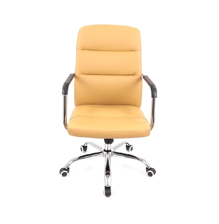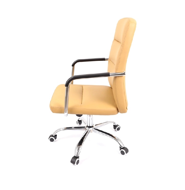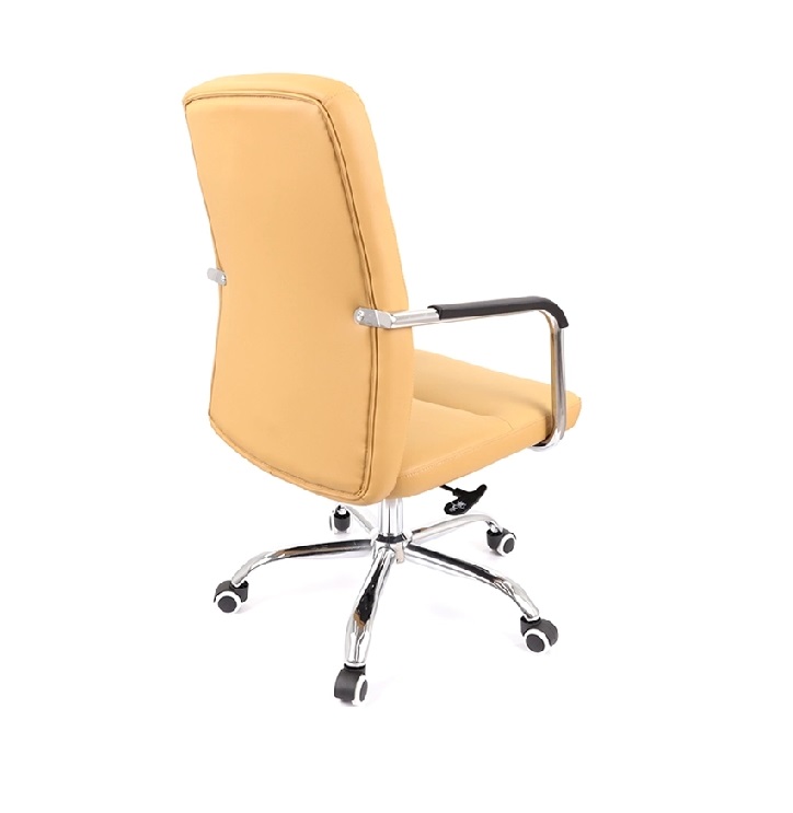 Подлокотники изготовлены из хромированной трубы, которая плавно переходит в каркас кресла. Такая конструкция достаточно жесткая, прочная и надежная. Дополненный накладками из черного пластика блестящий металл прекрасно подчеркивает внешнюю красоту кресла. Хромированное покрытие очень стойкое. Оно не царапается, а значит, надолго сохранит красоту кресла. Металлическая крестовина, которая стоит на данном кресле, отлично выдерживает нагрузку до 120 кг. Лучи крестовины имеют изогнутую форму, что формирует элегантный силуэт кресла. Кресло легко передвигается благодаря роликовым опорам. Кресло оснащено универсальными прорезиненными роликами, которые подойдут для всех типов напольных покрытий. Кресло средних размеров, с мягкой посадкой. Высота спинки ниже, чем у полноразмерной модификации на крестовине, но во всем остальном кресло такое же комфортное. Монолитное деревянное основание спинки имеет эргономичный прогиб в поясничной области, что обеспечит вашей спине комфортную поддержку и снимет нагрузку с позвоночника. Передняя часть сидения имеет скошенный край, чтобы не пережимались сосуды ног, а значит, ногам было более комфортно во время длительного нахождения на одном месте.