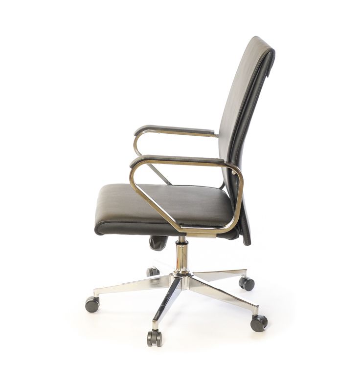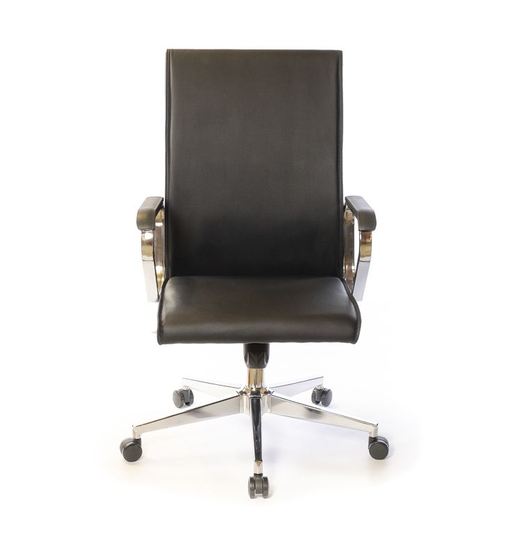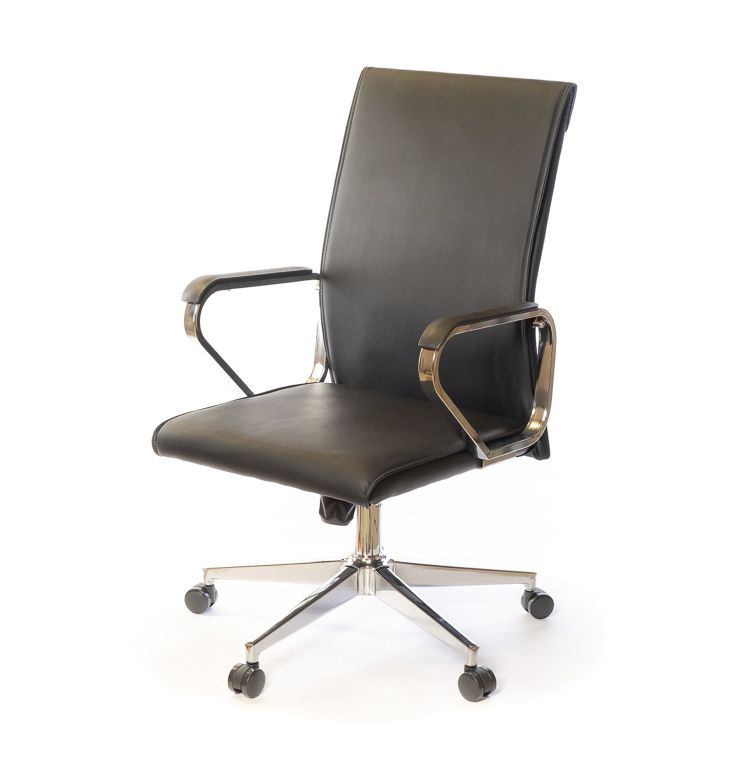 Данная модель оснащена механизмом качания повышенной комфортности Tilt, который позволяет сменить статический рабочий режим на комфортный режим качания для отдыха и релакса. Кресло регулируется по высоте и поворачивается на 360 градусов вокруг своей оси с помощью газлифта. Настройка механизма качания под вес пользователя происходит путём вращения цилиндрической ручки под сидением кресла. Под больший вес пружина механизма регулировки затягивается, а под меньший - отпускается. Металлические подлокотники имеют пластиковые накладки. Хромированное покрытие металлических деталей кресла достаточно стойкое, не царапается и надолго сохраняет привлекательный внешний вид. Высота подлокотников позволяет пододвинуть кресло вплотную к рабочему столу стандартной высоты и освободить окружающее пространство рядом. Прочная хромированная крестовина рассчитана на максимальный вес до 120 кг. В комплекте идут прорезиненные ролики, которые подойдут для всех типов напольных покрытий. Также с металлической крестовиной красиво сочетаются ролики со специальными хромированными накладками, которые также можно приобрести дополнительно. Спинка кресла средней высоты, подойдёт людям невысокого и среднего роста. Прогиб в поясничной области придаёт креслу необходимую эргономичность и благотворно повлияет на ваше самочувствие, особенно в конце рабочего дня - спина будет меньше уставать. Кресло достаточно мягкое благодаря толстому слою поролона в сидении и спинке, этим объясняется его необычайное удобство для большинства людей.