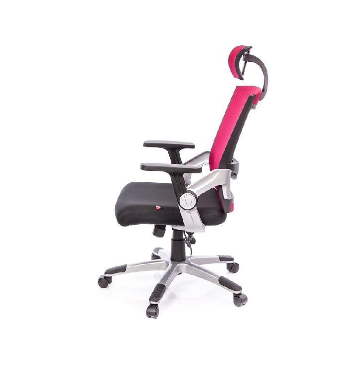 Механизмы. Встроенный механизм качания повышенной комфортности анификс даёт возможность устроить для себя любимого сеанс релакса, не прерывая важный телефонный звонок или продолжая составлять грандиозные планы покорения бизнес-олимпа, а после заняться текущими делами, зафиксировав кресло в удобном положении. Надёжный газлифт даёт возможность изменить высоту кресла с учётом вашего роста. Пластиковые подлокотники у данно модели - эксклюзивные. Они состоят из 2 частей разного цвета. Подвижная часть Т-образной формы из черного пластика имеет оригинальный дизайн крепления и может изменять угол наклона. Рабочая плоскость, на которую опираются руки, достаточно большая и имеет слегка шероховатую текстурированную поверхность для того, чтобы руки не соскальзывали во время работы. Крестовина кресла изготовлена из серебристого пластика. На окончаниях лучей крестовины установлены черные текстурные накладки, и это сочетание цветов перекликается с цветами подлокотников. Такие накладки-протекторы служат защитой от повреждений и царапин, а также предотвращают соскальзывание ног для большего удобства сидящего. Пластиковые ролики обеспечат креслу необходимую мобильность и подойдут для мягких напольных покрытий, на пример для ковролина. Для паркета, плитки или ламината рекомендуем заменить их на прорезиненные, которые можно заказать дополнительно. Данная модель имеет оптимальные габариты, достаточно высокую спинку и регулируемый по высоте подголовник, а значит отлично подойдёт для людей и высокого, и среднего роста. Посадка средней жесткости, сидение имеет небольшое углубление по центру и скошенный передний край - именно то, что нужно для длительного времяпровождения на одном месте. В основе сидения используется гнутоклеёная фанера с поролоновым наполнением под обивкой.