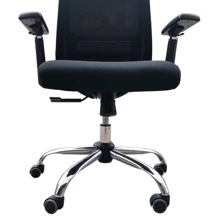 Дизайн кресла отвечает современным веяниям моды. Элегантная сетчатая спинка – это основной элемент декора данной модели. В сочетании с благородным черным цветом пластика и алюминиевыми деталями, такое оформление делает эту модель универсальной. Крестовина кресла изготовлена из блестящего металла. Она цельнолитая, что увеличивает ее прочность и позволяет выдерживать нагрузку до 120 кг. Блестящее алюминиевое покрытие металла не только красиво, но и очень прочно. Оно не боится интенсивных нагрузок и не подвержено царапинам. Ролики обеспечивают креслу необходимую мобильность. В этой модели они прорезиненные и подойдут для всех типов покрытий. Эта модель имеет стильные Т-образные подлокотники из черного пластика. Пластик имеет специальное покрытие, очень приятное при физическом контакте с руками.