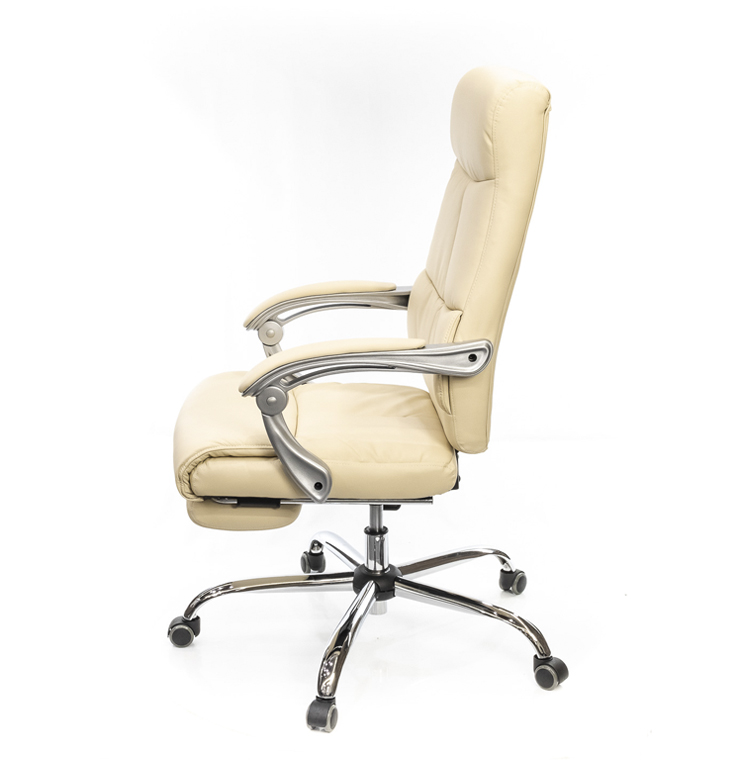 У данной модели стильные подлокотники из прочного, толстостенного, серебристого пластика. Широкие мягкие накладки уберегут руки от контакта с твердым пластиком и подарят дополнительный комфорт. Высота подлокотников в нижнем положении сидения кресла имеет высоту, которая дает возможность задвинуть кресло под рабочий стол для освобождения окружающего пространства. Подлокотники оснащены шарнирным соединением на сгибе и легко изменяют форму совместно с изменением положения спинки. Металлическая крестовина кресла Савой - прочная и надёжная, рассчитанная на нагрузки до 120 кг. Крестовина дизайнерская, увеличенная в диаметре для того, чтобы обеспечить креслу дополнительную устройчивость во время раскадки в кресло-лежанку. Роликовые опоры обеспечат креслу мобильность. На кресле установлены универсальные прорезиненные ролики, которые подойдут для любого напольного покрытия. К этому креслу отлично подойдут ролики с хромированными накладками в стиле металлических деталей кресла. Крестовина благодаря хромированному покрытию не потеряют свою красоту со временем, ведь покрытие очень прочное и стойкое ко всевозможным внешним факторам. Кресло Савой имеет комфортную спинку и сидение. С помощью поролонового наполнения и обивки сформирован правильный по эргономике и привлекательный внешне рельеф кресла. Все изгибы разработаны с учётом антропометрии тела и позволят вам чувствовать себя в этом кресле комфортно и избежать усталости даже после долгого трудового дня. Выдвижная подставка для ног - еще одна особенность данного кресла. С ее помощью кресло превращается в полноценное комфортное место для отдыха.