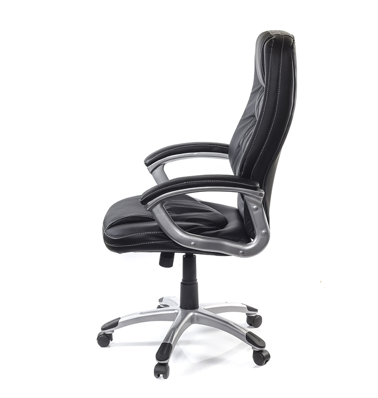 Обивка данного кресла выполнена из экокожи PU — это материал, который и внешне, и по своим свойствам напоминает натуральную кожу. Он приятен на ощупь, обладает "дышащими" свойствами, неприхотлив в уходе, ну и к тому же имеет привлекательную цену, что также немаловажно. Эластичность такого материала позволяет сформировать красивый внешний рельеф кресла с помощью декоративной прострочки однотонными декоративными нитками. Элегантный чёрный цвет - это неоспоримая классика. Такое кресло выигрышно будет смотреться в любом интерьере. Все конструктивные детали и механизмы идеально сочетаются друг с другом. Механизм качания даст возможность прерывать работу приятными сеансами расслабления, не вставая с любимого кресла, а газлифт поможет установить оптимальную для вашего роста высоту сидения. С помощью декоративной ручки такой механизм легко настраивается под вес пользователя, что позволяет ему работать исключительно безопасно и правильно. Газлифт позволит изменить высоту посадки соответственно вашему росту, чтобы вы устроились в нем с максимальным комфортом.