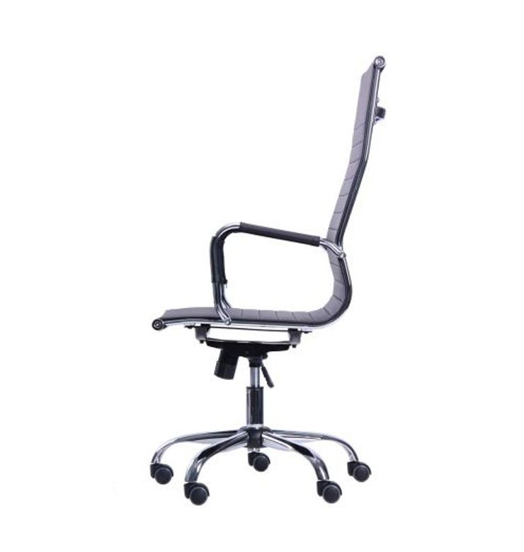 Эта стильная модель сочетает в себе лаконичный внешний вид, правильную эргономику, высококачественные материалы и современные механизмы. Кожаная обивка и блестящий металл - беспроигрышное сочетание, которое уместно будет смотреться в любом современном интерьере. Под классическую обстановку с минимумом деревянных деталей кресло также подойдет, благодаря тому, что оно достаточно элегантное и изящное. Стильная горизонтальная прошивка на сидении и спинке кресла – это, пожалуй, и всё оформление данной модели. Этот этот минимализм не делает её неприметной. Скорее, наоборот, благодаря этому кресло выглядит элегантно и идеально подходит к любому интерьеру. Декоративные полосы сформированы не с помощью нити, а фабричным прессованием. В отличие от обычной прошивки, при таком способе отделки материал не прокалывается, а спрессовывается. При этом поверхность остается целой и это делает его более долговечным и износостойким в процессе эксплуатации. Классические цвета обивки красиво сочетаются с металлическим каркасом и крестовиной кресла.