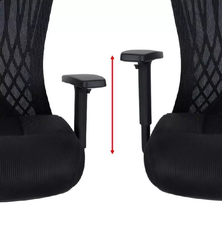 Подлокотники. У данной модели стильные Т-образные подлокотники из черного пластика. Пластик имеет специальное резиновое покрытие, очень приятное при физическом контакте с руками. Подлокотники регулируются по высоте под ваши личные потребности.