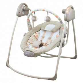 Качели предназначены для детей весом до 9 кг. Регулируемая высота спинки и скорости катания позволяет приспособить качели к потребностям каждого ребенка. Гарантию безопасности дают пятиточечные ремни безопасности. Качели снабжены дугой для карусели с игрушками, притягивающими внимание ребенка, а также снабжены функцией, которая сделает игру более интересной и помогут уснуть. Снимаемый чехол помогает сохранить качели в чистоте.