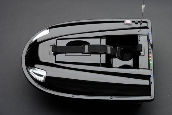 Катер оборудован системой световой сигнализации для ночного лова и индикации разряда аккумуляторов, бункером для размещения приманки и снастей, предохранителями от защиты от перегрузки и неправильного подключения аккумуляторов, 4-х канальным пультом д/у с частотой 40 МГц, аккумулятором 12VDC.