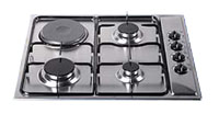 1 электрическая конфорка (1500 Вт), 3 газовых (скоростная, полускоростная, вспомогательная). Решетки из эмалированной стали. Работа на магистральном или сжиженном газе (форсунки в комплекте).