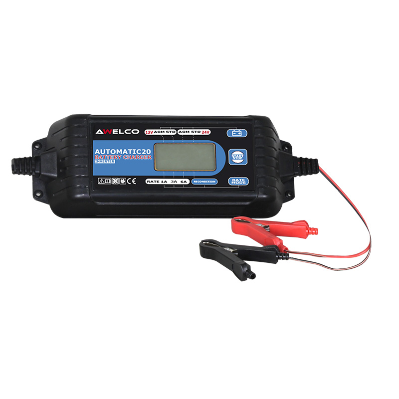Инверторное зарядное устройство с функцией буфера и автоматического выключения. Подходит для аккумуляторов мотоциклов и автомобилей. Особо бережный заряд батареи.