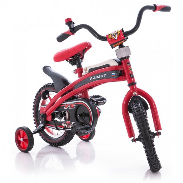 Эргономичное сиденье велосипеда Azimut можно отрегулировать по высоте, руль, в свою очередь, настраивается еще и по углу наклона. Большой плюс этого велосипеда – боковые съемные колесики, благодаря которым малыш еще не умеющий ездить на двухколесном велосипеде сможет безопасно научиться делать это.