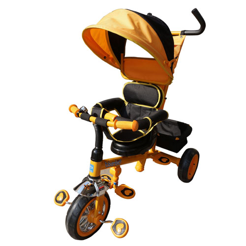 Трехколесный велосипед Bambi с капюшоном колясочного типа. Родительская ручка управляет передним колесом. Есть бампер для дополнительной безопасности ребенка. Велосипед подойдет для детей старше 12-ти месяцев. Благодаря родительской ручке вы будете управлять велосипедом. Особенностью такого транспорта является то, что велосипед может также служить прогулочной коляской.