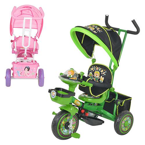 Отличной альтернативой прогулочной коляске летом может стать трехколесный велосипед. Для защиты от солнечных лучей и ветра предусмотрен козырек. Есть эргономичная родительская ручка. Сиденье комфортное со спинкой, есть подножка, для безопасности ребенка предусмотрен бампер. В корзину можно положить игрушки или пакеты. Переднее колесо большего диаметра, что обеспечит отличную проходимость. На руле есть панель со световыми эффектами и музыкой