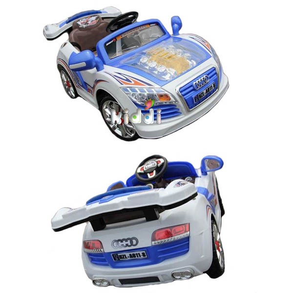 Своим внешним видом детский автомобиль напоминает настоящую машину. У него есть: лобовое стекло (выполненное из пластика, для обеспечении безопасности); зеркала заднего вида (искусственное зеркало); на радиаторной решетке расположен значок настоящего автомобиля Audi; на колесах большие блестящие диски; передние фары включаются при движении электромобиля, что придает автомобилю еще большей реалистичности; имеется звуковой сигнал на руле.