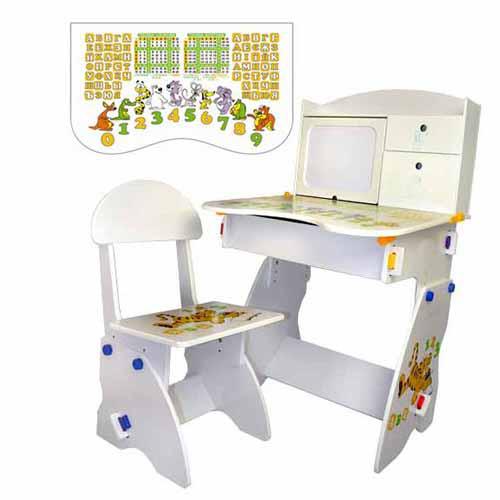 - Удобная красочная парта с картинками, алфавитом и цифрами;