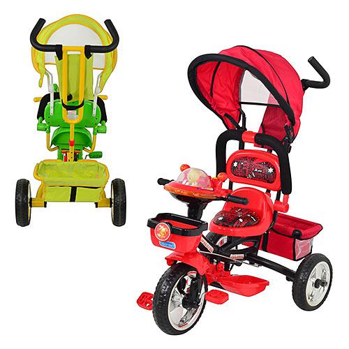 Сделан трехколесный велосипед B29-1B-1 из высококачественного металла, рама выдерживает нагрузку до 25 кг. Усиленная двойная ручка, которая регулируется по высоте. Удобные подставки для ножек. Корзина для игрушек удобная и вместительная. Имеется также тент от солнца.