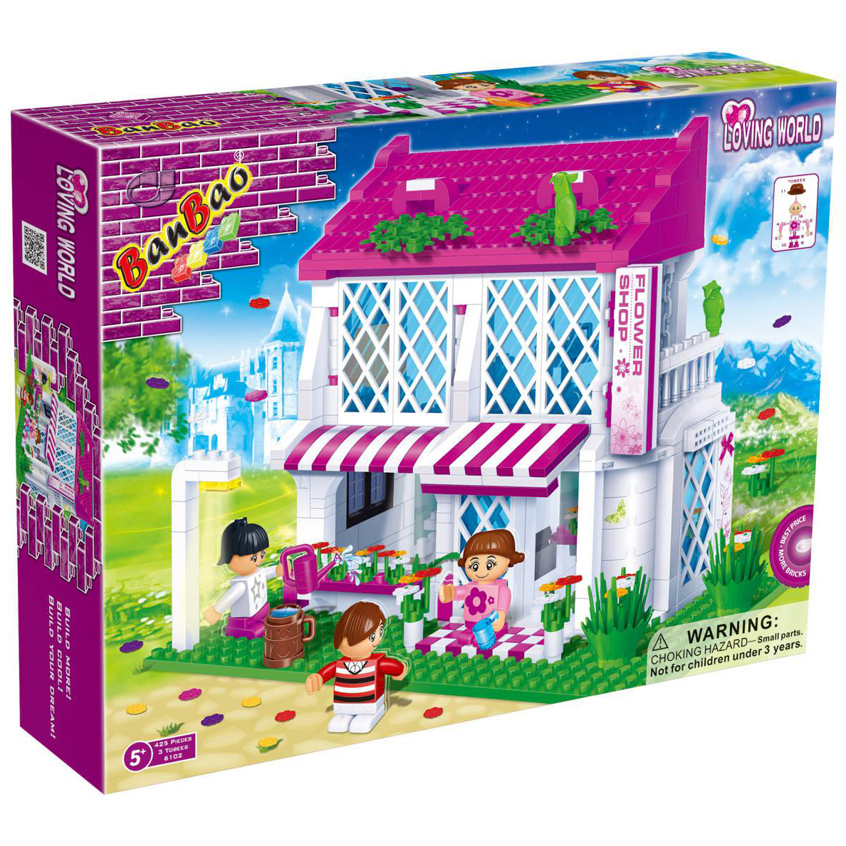 Из деталей этого конструктора можно построить двухэтажный цветочный магазин с балконом, лестницей, оборудованным местом для кассира и прилавком с цветами. В набор также входят три человечка, каждый из которых состоит из 11 деталей, с которыми можно разыграть различные ситуации, которые могут произойти в цветочном магазине.