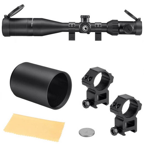 Комплектация прицела расширена. В нее включены 30-мм крепежные кольца, солнцезащитная бленда и откидные крышки объектива и окуляра типа Flip-Up. Кольца имеют крепление на планку Weaver/Picatinny. Бленда защищает не только от попадания солнечных бликов, но и от отражения бликов и от дождя. Крышки Flip-Up всегда будут оставаться на прицеле во время стрельбы и позволят мгновенно обеспечить защиту объектива и окуляра при транспортировке или во время дождя