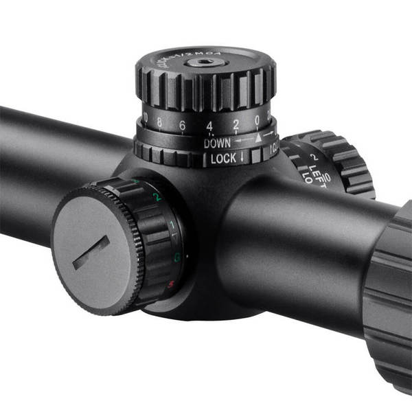 Барабаны ввода поправок по вертикали и горизонтали у прицела открытые, сконструированы по тактической схеме, и имеют цену деления 0.5 МОА. Такая тактическая конструкция позволяет легко вносить необходимые поправки по ходу стрельбы, что особо актуально при стрельбе на дальние дистанции. Для того, чтоб настройки случайно не сбивались во время стрельбы или транспортировки, барабаны снабжены системой фиксации. Также конструкцией предусмотрена возможность калибровки барабанов для фиксации начальной точки ввода поправок на отметке "ноль".