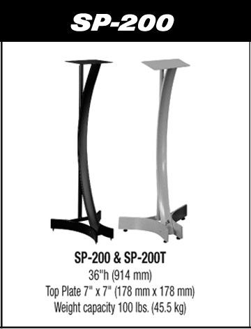 Элегантные стойки для акустических систем прекрасно сочетаются с подставками AVS-2552/ 2563/ 2572 и AVS-425/ 455. Цвет покрытия SP-200 — черный.