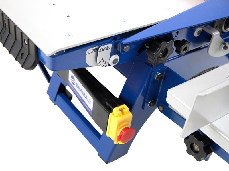 С целью улучшения условий эксплуатации и повышения точности обработки изменена конструкция приспособления для поперечной распиловки под углом. механическая блокировка строгальных столов и измененная конструкция крепления приспособления для поперечной распиловки под углом.