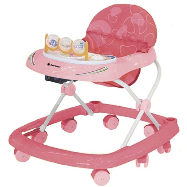 Ходунки Bertoni Lorelli BW-4 розовый-красныйЕсли ваш ребеночек пытается стать на ножки, но пока еще теряет равновесие, можно попробовать купить ходунки. Ходунки – это своего рода опора, призванная помочь тем детям, которые пытаются ходить, но пока еще боятся. Если вы хотите, чтобы ваш малыш падал как можно реже, обратите внимание на модели с прямоугольным основанием и большим количеством поворотных колес. Так же постарайтесь купить ходунки с регулируемой высотой. Ни в коем случае нельзя допускать, чтобы ваш ребенок подгибал ноги, так как это может негативно отразиться на развитии опорно-двигательного аппарата. Ходунки Bertoni BW-4 помогут вашему малышу безопасно совершать первые шаги. Ходунки Bertoni BW-4 сделаны из качественного пластика и оборудованы восемью колесиками. Музыкальная панель и съемные игрушки, которые входят в комплект ходунков, развивают мелкую моторику и координацию движений. Ходунки Bertoni BW-4 имеют яркую расцветку.