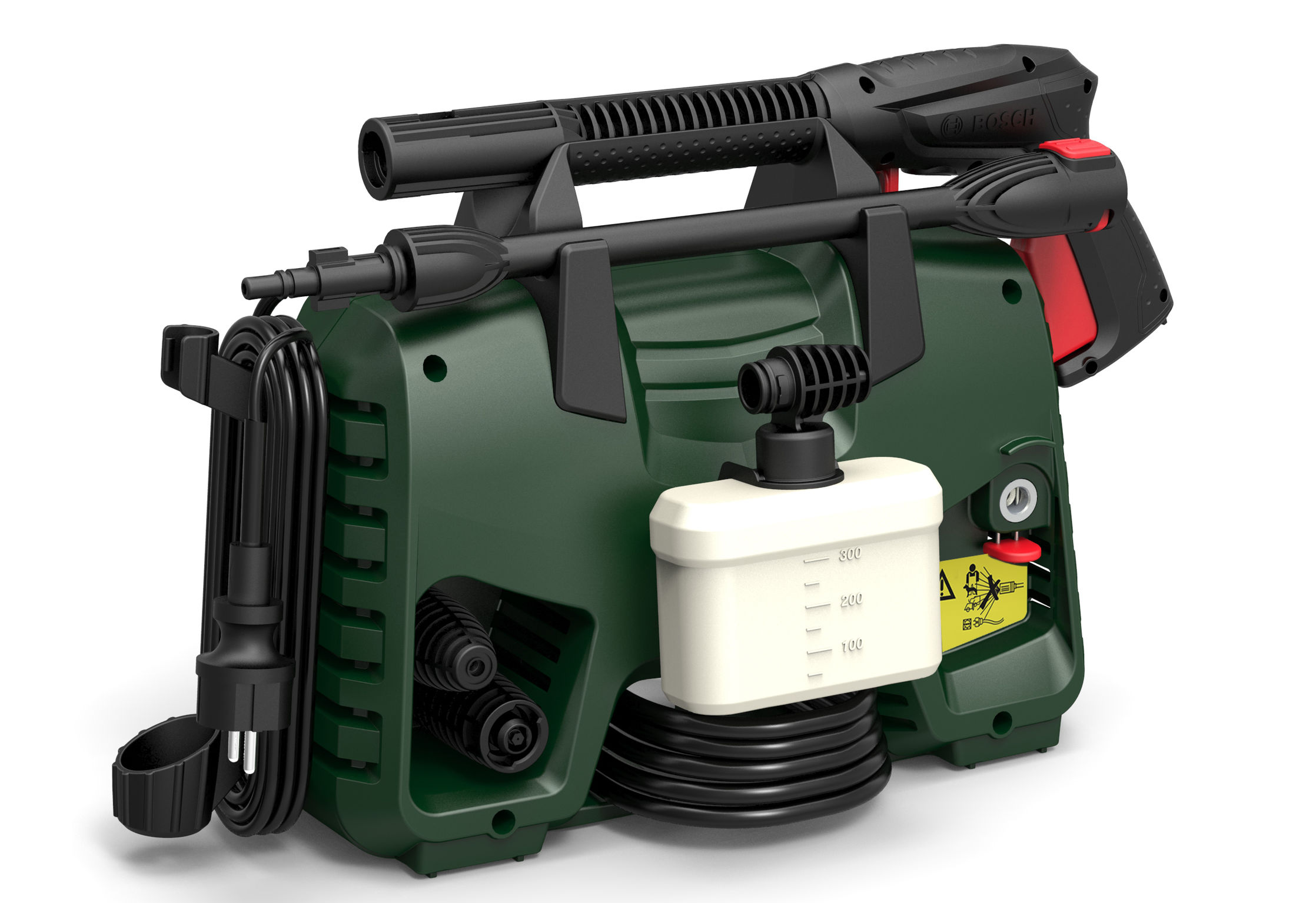 Мойка высокого давления Bosch AQT 33-11 проста и удобна в использовании. Комплектуется пистолетом, трубкой, насадкой для моющего средства, веерной и роторной насадкой. Все принадлежности хранятся на корпусе аппарата. Использование моющего средства повышает эффективность очистки. Система Autostop (автоматическое отключение насоса при отпускании курка пистолета) способствует экономии электроэнергии.