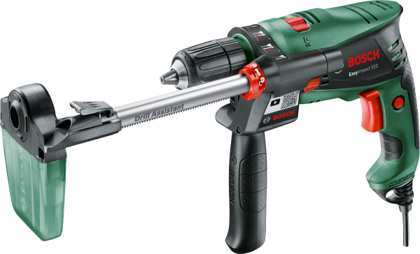 Ударная дрель BOSCH EasyImpact 550 БЗП - новинка, мощный 3-режимный электроинструмент из серии "Домашний мастер" в компактном исполнении корпуса с минимальным весом (всего 1,5 кг), работает в режиме "Завинчивание/Сверление/Сверление с ударом". Модель предназначена для работы с бетоном (сверление, завинчивание шурупов), древесиной (сверление, завинчивание шурупов), черными металлами (сверление, завинчивание шурупов), пластиком (сверление, завинчивание шурупов), камнем (сверление, завинчивание шурупов), натуральными материалами (сверление). Мощный двигатель позволяет выполнять сверление бетона. Дрель EasyImpact 550 оснащена 2-кулачковым БЗП для быстрой смены оснастки. Наличие реверса позволяет выполнять выкручивание шурупов и устранять ситуации при заклинивании оснастки в заготовке. Частота вращения оснастки регулируется электроникой посредством кнопочного выключателя - благодаря точной регулировке, возможно сделать засверливание гладких поверхностей и закручивание шурупов. В этой модели реализована инновационная дополнительная рукоятка с максимально надежной фиксацией и удобным хватом без скольжения.