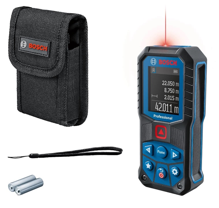 Прочный лазерный измеритель для точного измерения расстояний от 0.05 до 50 м. Точность составляет ±1,5 мм.