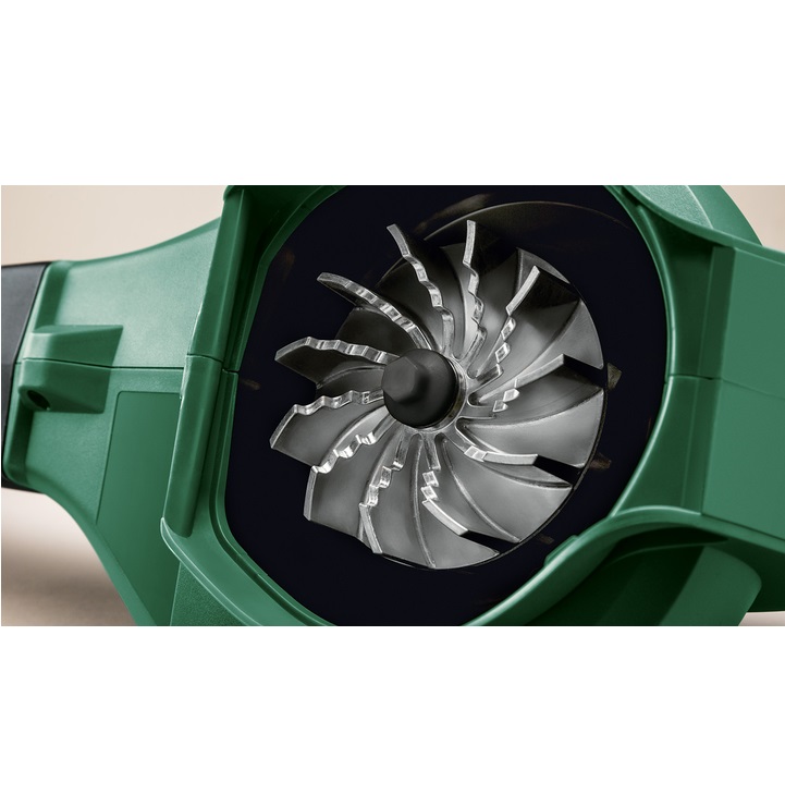 Металлический вентилятор обеспечивает оптимальную производительность при длительной работе, а спиральная конструкция позволяет легко и безопасно удалять мусор, блокирующий входное отверстие.