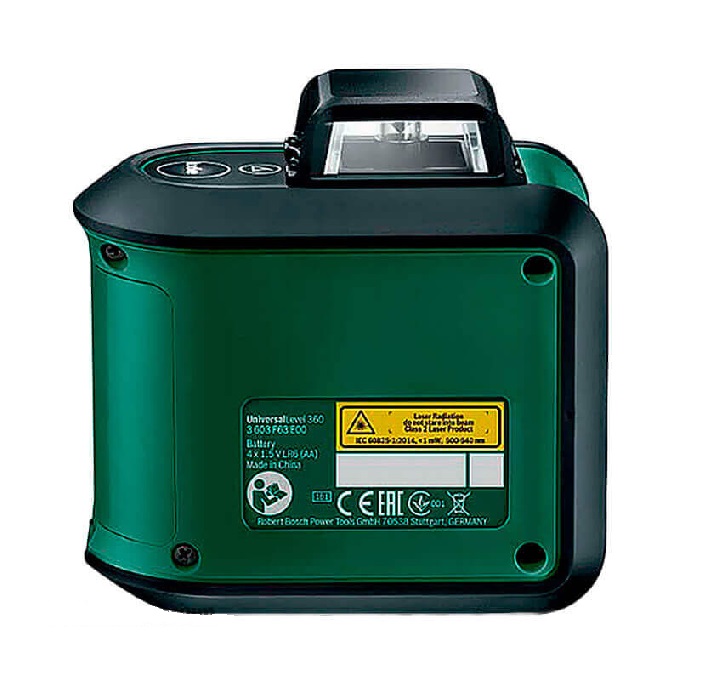 Лазерный нивелир Bosh UniversalLevel 360 проецирует на расстояние до 24 м горизонтальную и вертикальную линии. Горизонтальная линия проецируется на 360°. Угол раскрытия вертикальной — менее 120°. Лазерные лучи зеленого цвета четко видны на всем рабочем расстоянии. Выравнивание линий происходит автоматически всего за 4 секунды, дефекты устраняются в диапазоне ±4 с выверенностью ±0,4 мм/м. Прибор имеет гнездо 1/4" для крепления на штативе. Оборудование работает от батареек 4 АА мощностью 1.5 В. В комплектации Bosh UniversalLevel 360 Set поставляется с защитным чехлом, 4 АА батарейками (1.5 В) и штативом 1,5 м.