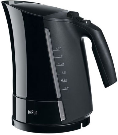 Пользоваться чайником Braun WK 300 Black очень просто и удобно. Оба переключателя расположены рядом друг с другом, так что Вы сможете без труда включить или выключить его, а также открыть крышку. Чайник Braun WK 300 Black вращается на подставке на 360°, таким образом, его можно поставить на подставку с любой стороны.