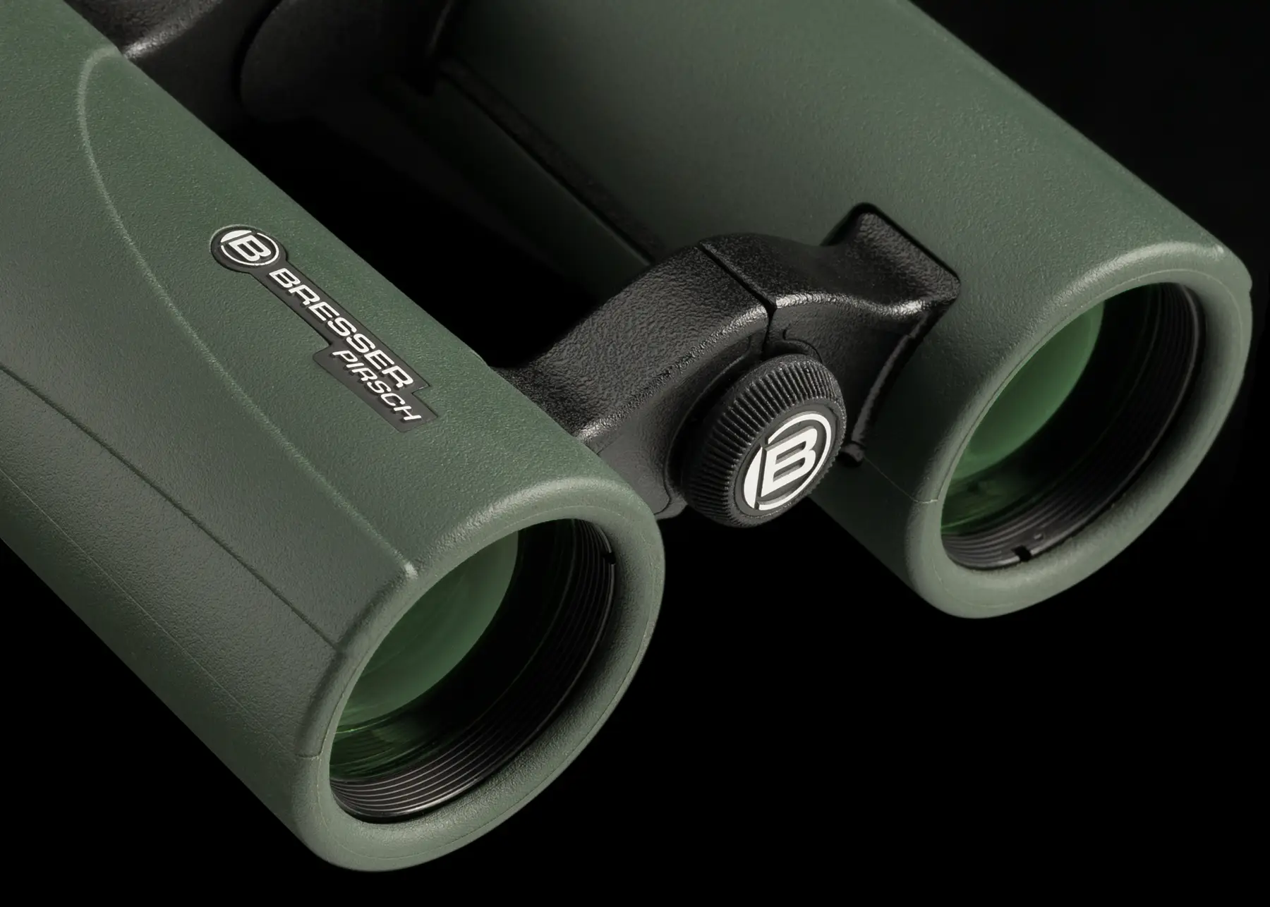 Компактний і універсальний бінокль Bresser Pirsch 8x34 WP Phase Coating (1720834) - відповідає всім сучасним високим вимогам та стандартам: повне багатошарове просвітлення лінз, захист від води та пилу, продутий азотом, призми з високоякісного оптичного скла BaK4. Корпус виконаний з легкого та міцного полікарбонату, вкритий гумовим покриттям з профільною накаткою, характеризується високою точністю підгонки всіх вузлів та складових компонентів. Конструкція корпусу з двома шарнірами і відкритим мостом, дозволяє зробити захват бінокля максимально надійним і зручним. Вся оптика Bresser Pirsch також має спеціальне покриття UR (Ultimate Reflection Coating), для покращення видимості в сутінках. Високоякісне спеціальне фазокоректуюче покриття (Phase Correction), яке наноситься на одну з поверхонь призменной обертової системи у вигляді найтонших шарів
