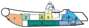 Антискользящее покрытие палубы Жесткие законцовки баллона со ступеньками Встроенные носовой и кормовой рундуки Система вентиляции трюма Пассивная дренажная система кокпита и моторного отсека Встроенный топливный бак с внешней заливной горловиной Носовая якорная накладка Носовое буксировочное кольцо 2 кормовые кнехты 4 встроенных подъемных кольца Двойной привальный брус Литые ручки для переноски 2 гребковых весла Ремкомплект с двухкомпонентным клеем Сумка для принадлежностей Руководство пользователя