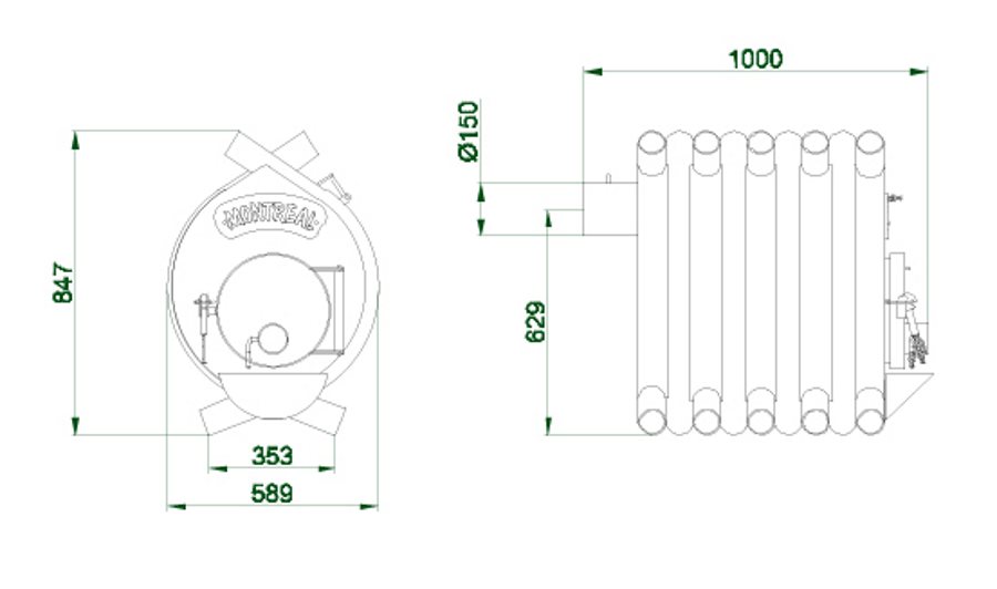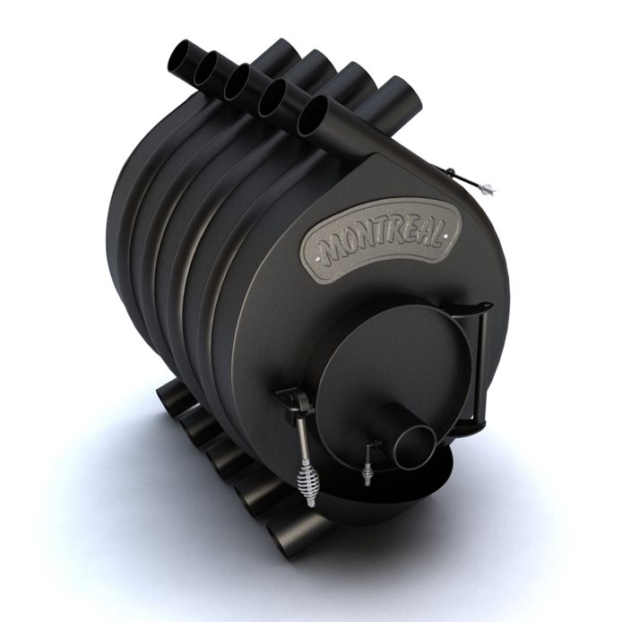 Отопительная печь Buller тип 02 работает на твердом топливе — дровах, древесных отходах, торфе, брикетах и т. п. Может быть использована, как источник тепла в жилом или производственном помещении. Принцип работы как в газогенераторе — тлеющее горение. Сконструирован таким образом, что за счет конвекции самостоятельно смешивает воздух по всему объему. Через трубки снизу засасывается холодный воздух, а через ряд верхних труб выбрасывается воздух подогретый до 60-80 градусов. Не смотря на это температура поверхности самой печки остается весьма низкой, никогда не раскаляется. Отличается своей экономичностью, за счет сжигания топлива в два этапа. Первая камера предназначена для процесса тления и образования печных газов, вторая для сжигания газов благодаря подаче вторичного воздуха через специальные форсунки. Происходит полное сгорание и КПД 70-75%. На полной загрузке печь способна проработать 8-12 часов. Работает без присмотра. Пожаробезопасность обеспечена герметически закрываемой дверцей и низкой температурой поверхности. При установке в жилых помещениях её можно отделать в виде камина и вывести монтаж воздушного отопления по всему помещению.