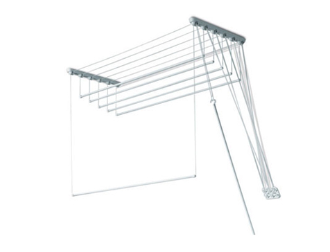 Данную сушилку можно установить практически везде, где есть потолок. Белье сушится под самым потолком и не создает никаких неудобств, а только сокращает время сушки. Стержни, на которые развешивается белье, опускаются до нужного уровня, в зависимости от роста человека.