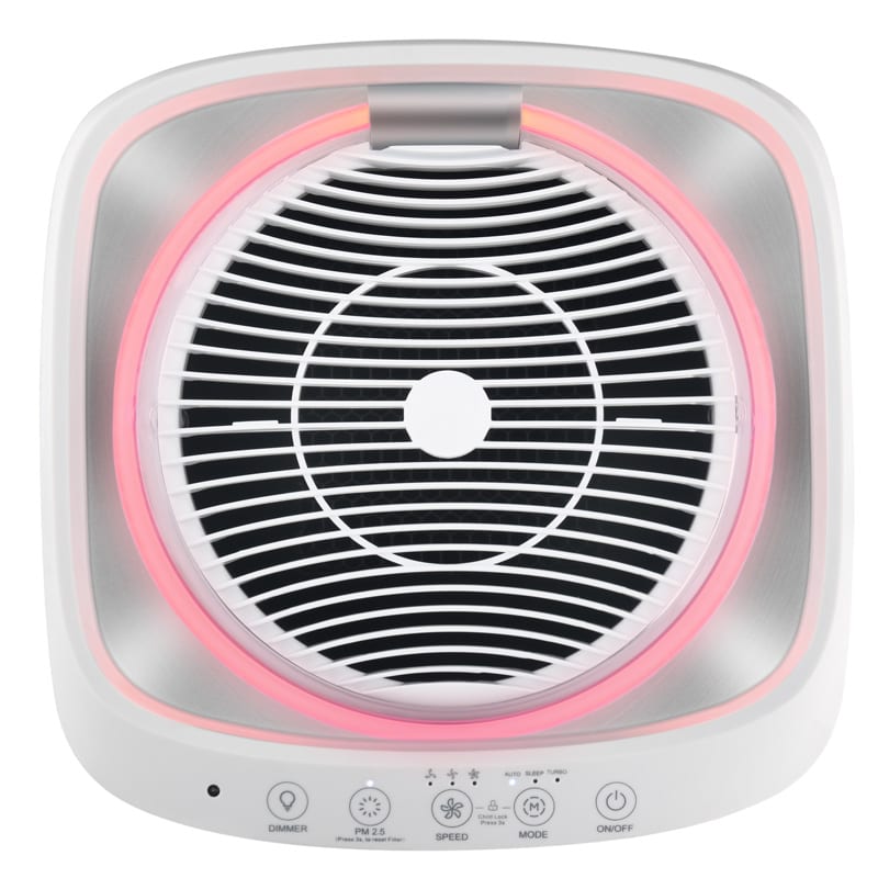 Футуристический дизайн прибора с круговой верхней панелью не только украсит помещение, но и абсолютно безопасен в эксплуатации и допускается для использования в помещениях с детьми. Прибор выполнен без острых углов и оснащен функцией автоматического отключения при снятии вентиляционных решеток. Также, в модели предусмотрена блокировка панели управления, которая позволит обезопасить настройки от постороннего вмешательства (управление блокируется при одновременном нажатии кнопок “SLEEP” и “MODE”).