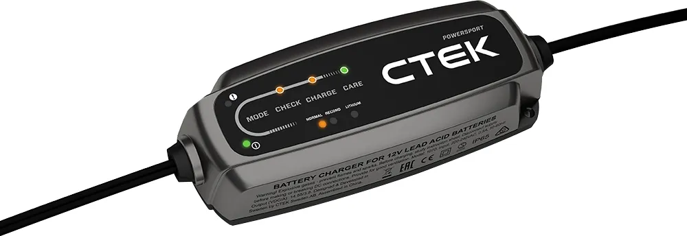 Зарядное устройство CTEK CT5 POWERSPORT специально разработано для зарядки и поддержания уровня заряда аккумуляторных батарей автомотоспортивных транспортных средств с напряжением 12 В и емкостью 5-25 Ач, чтобы вы могли наслаждаться свободой автомотоспорта. Расход обратного тока менее 1,5 Ач в месяц.
