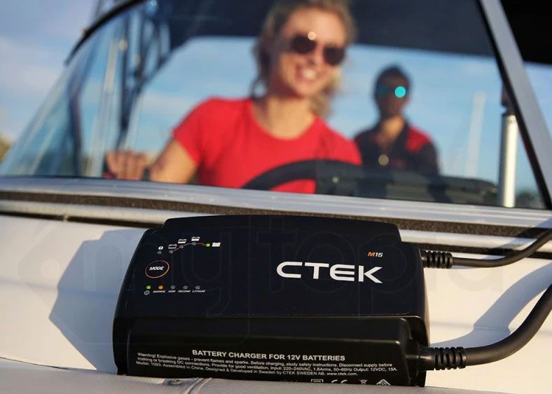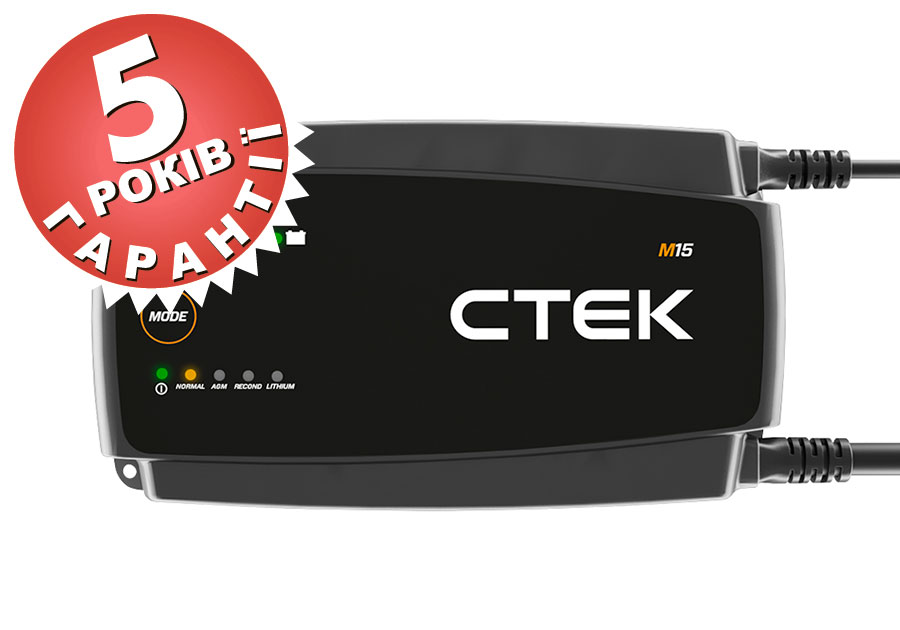 CTEK M15 - идеальный 15A зарядное устройство для всех владельцев лодок. Он имеет целый ряд функций, включая режим Recond для восстановления глубоко разряженных WET и Ca / Ca аккумуляторов, и датчик температуры, который оптимизирует заряд, если температура отклоняется от + 25˚C. Он также имеет режим Lithium для литиевых аккумуляторов (LiFePO4, Li-Fe, Li-iron, LFP). M15 оснащен длинным 4-метровым кабелем с ушками M10 для легкой установки на ваш лодку. Расходы обратного тока менее 1Ah в месяц *.